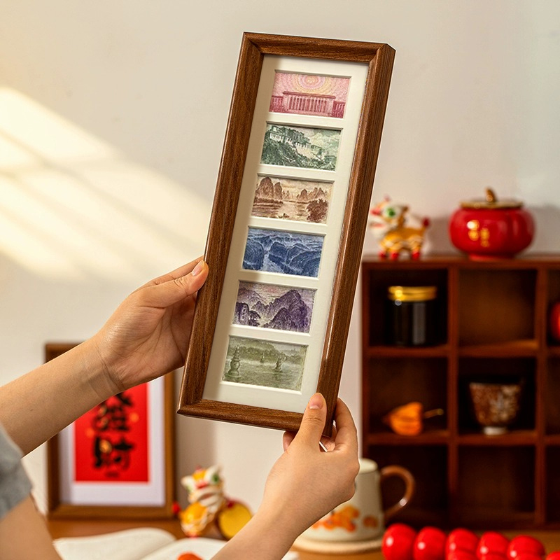 祖国大好河山六连框相框增运多金摆台diy客厅摆件人民币装饰画