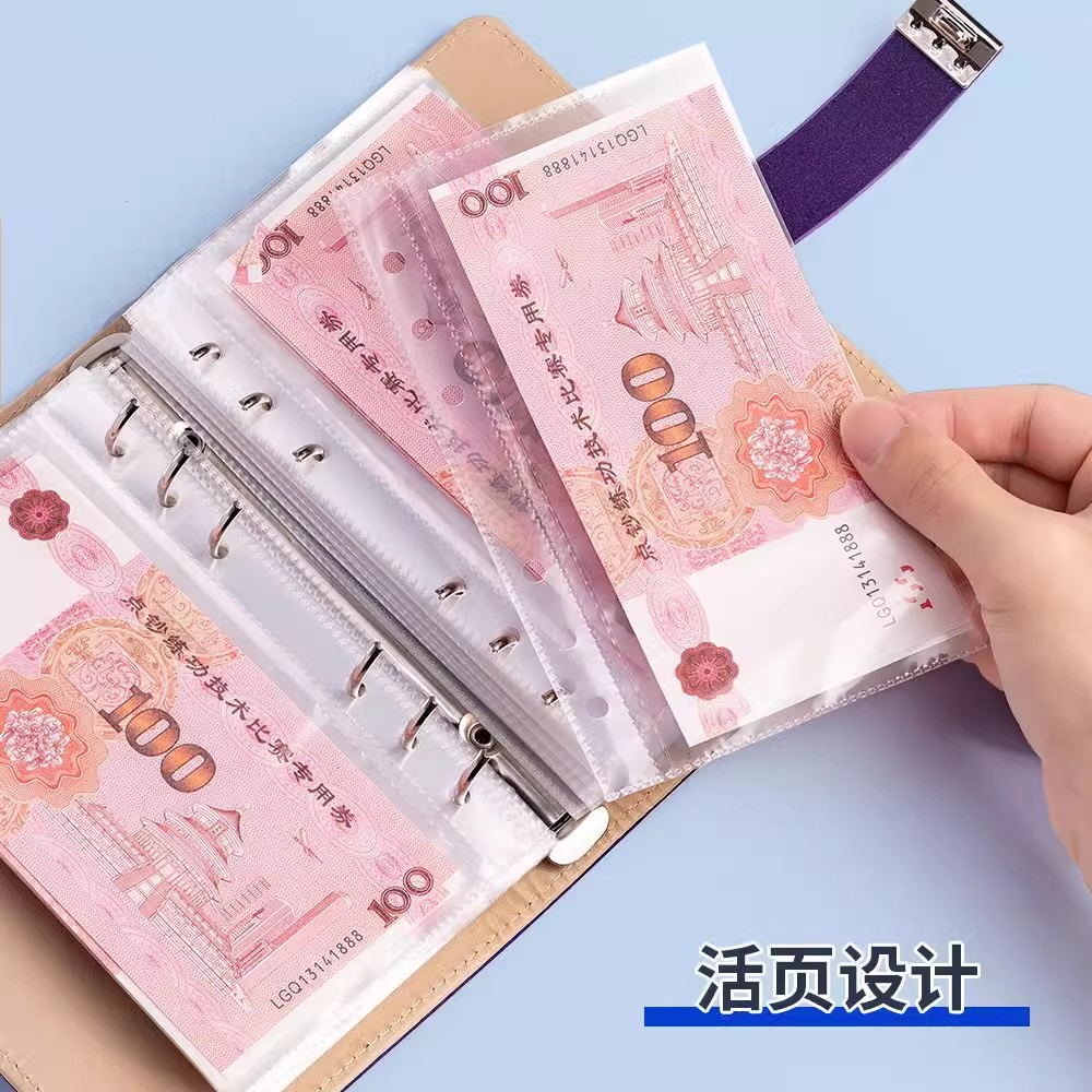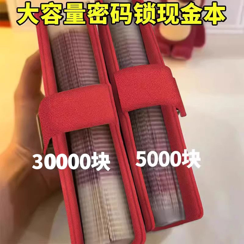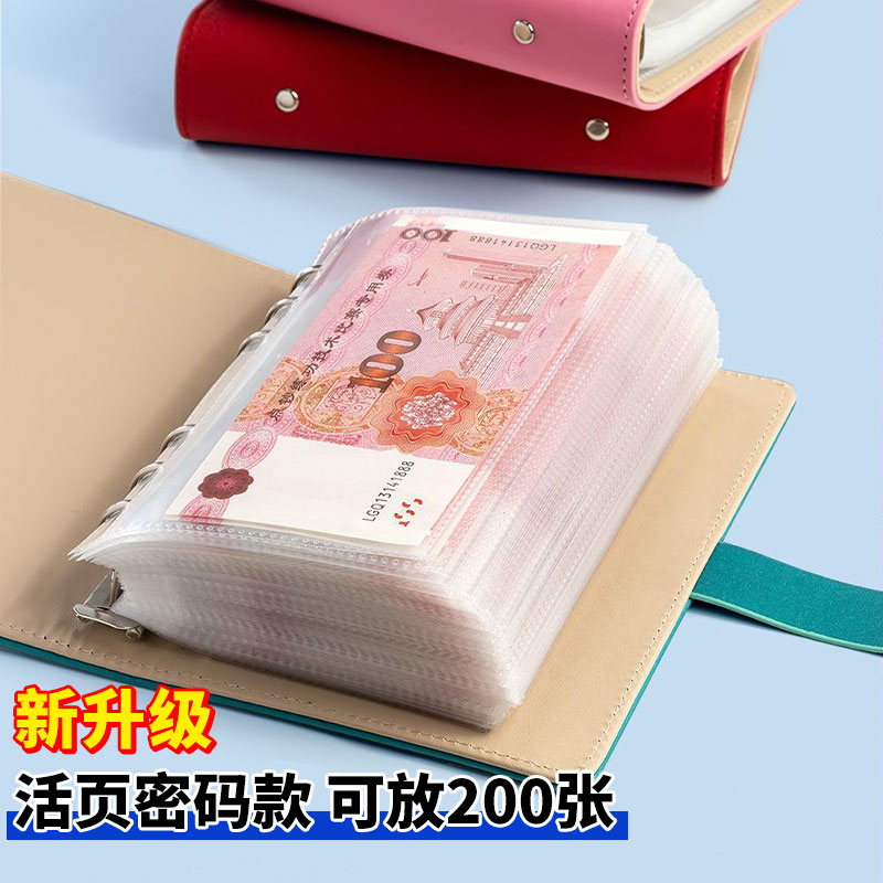 现金理财存钱本放200张存钱夹钱册2025新款百元钞票人民币纸币收藏册现金袋记账本一万元大容量带密码锁本子