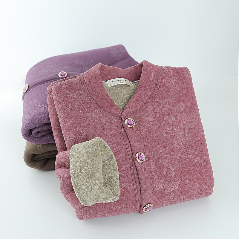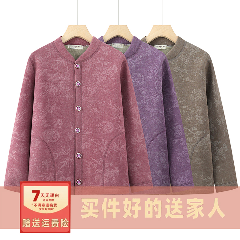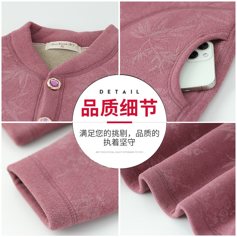热风圈中老年人保暖内衣女加绒开衫妈妈厚外套奶奶秋衣老太太冬季