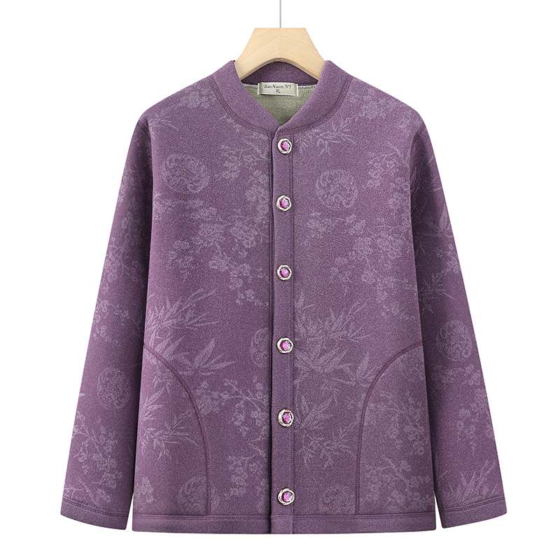 时尚印花妈妈装秋冬外套女士中老年大码冲锋衣两件套加厚绒保暖紫