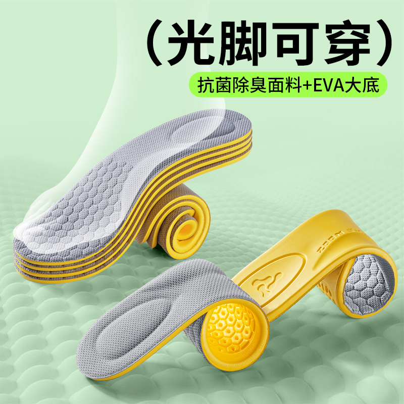 踩屎感鞋垫久站不累软底夏季足弓支撑运动气垫减震吸汗防臭男女款