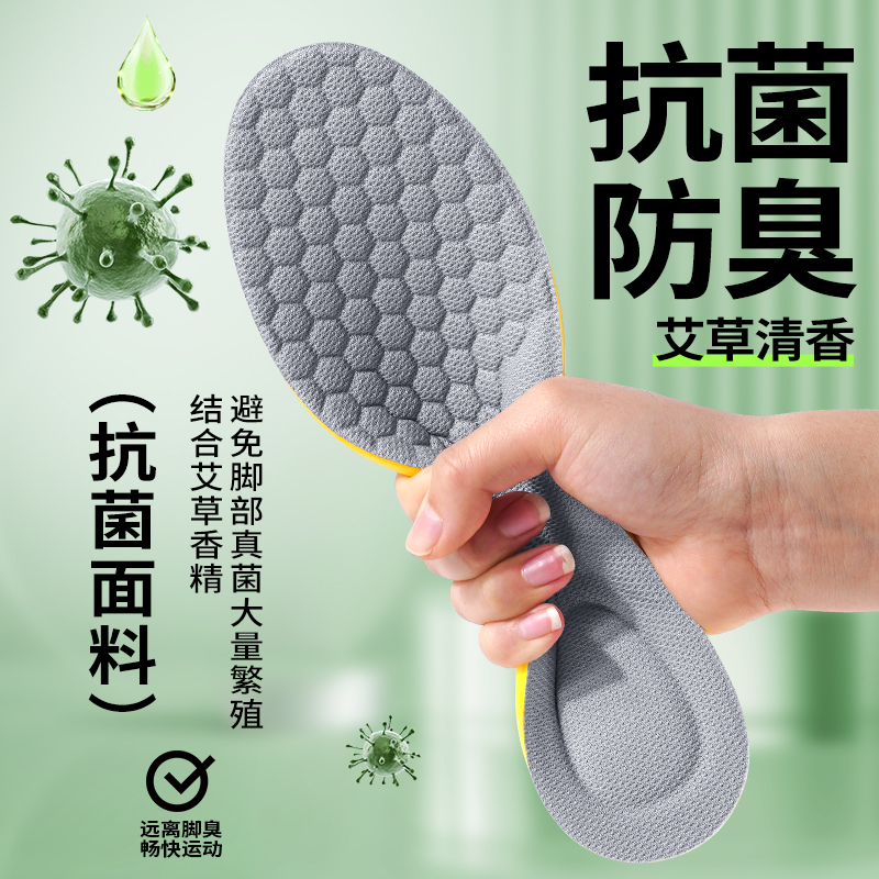 吸汗防臭鞋垫男士艾草除臭透气运动气垫减震久站不累抗菌留香汗脚