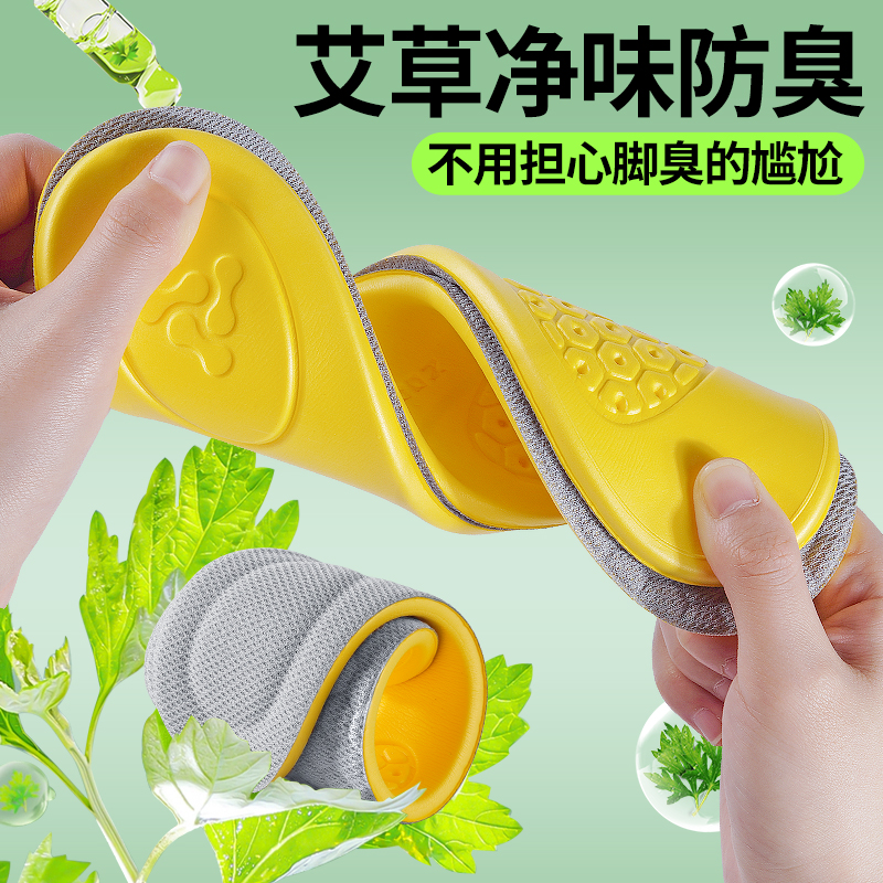 艾草防臭踩屎感运动鞋垫按摩男女通用军训舒适减震软底鞋透气垫子