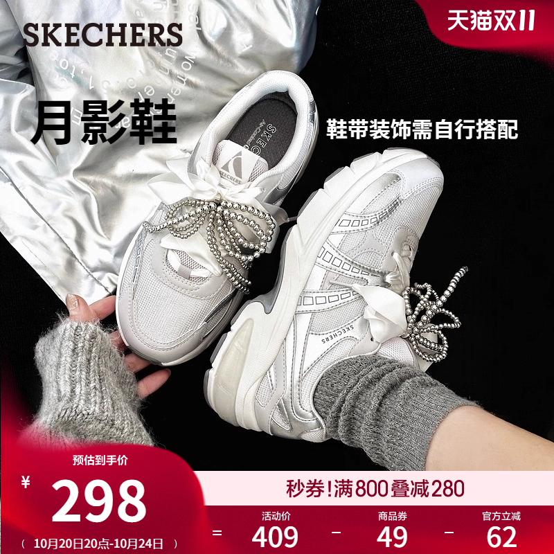 【成毅同款】斯凯奇月影鞋|女鞋银色老爹鞋2025秋新款厚底休闲鞋