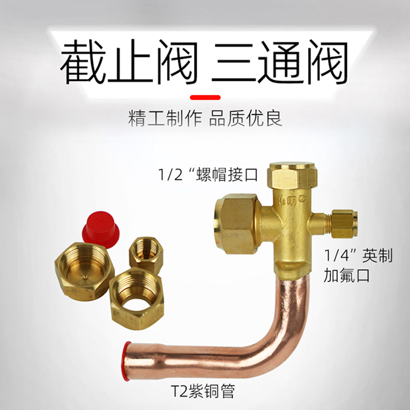空调角阀截止阀三通阀1P1.5匹2P高低压阀门3分外机加氟口制冷配件