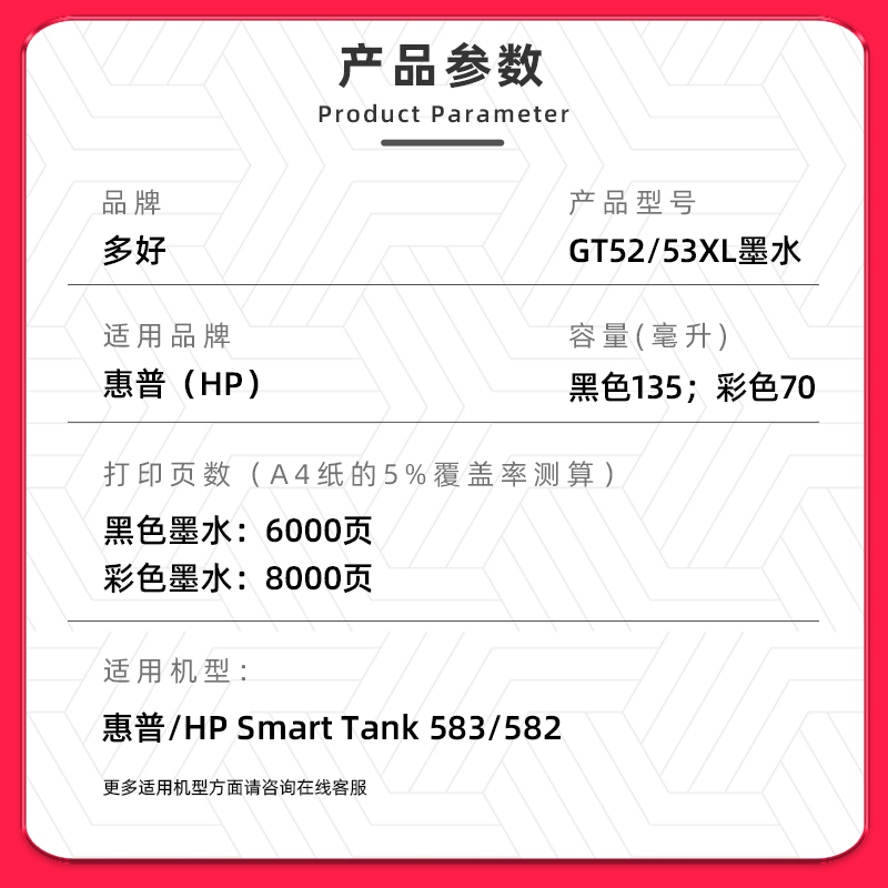 【Smart Tank 583专用墨水】多好原装效果适用HP583墨水惠普打印机油墨黑色Tank 582墨盒HP582墨水