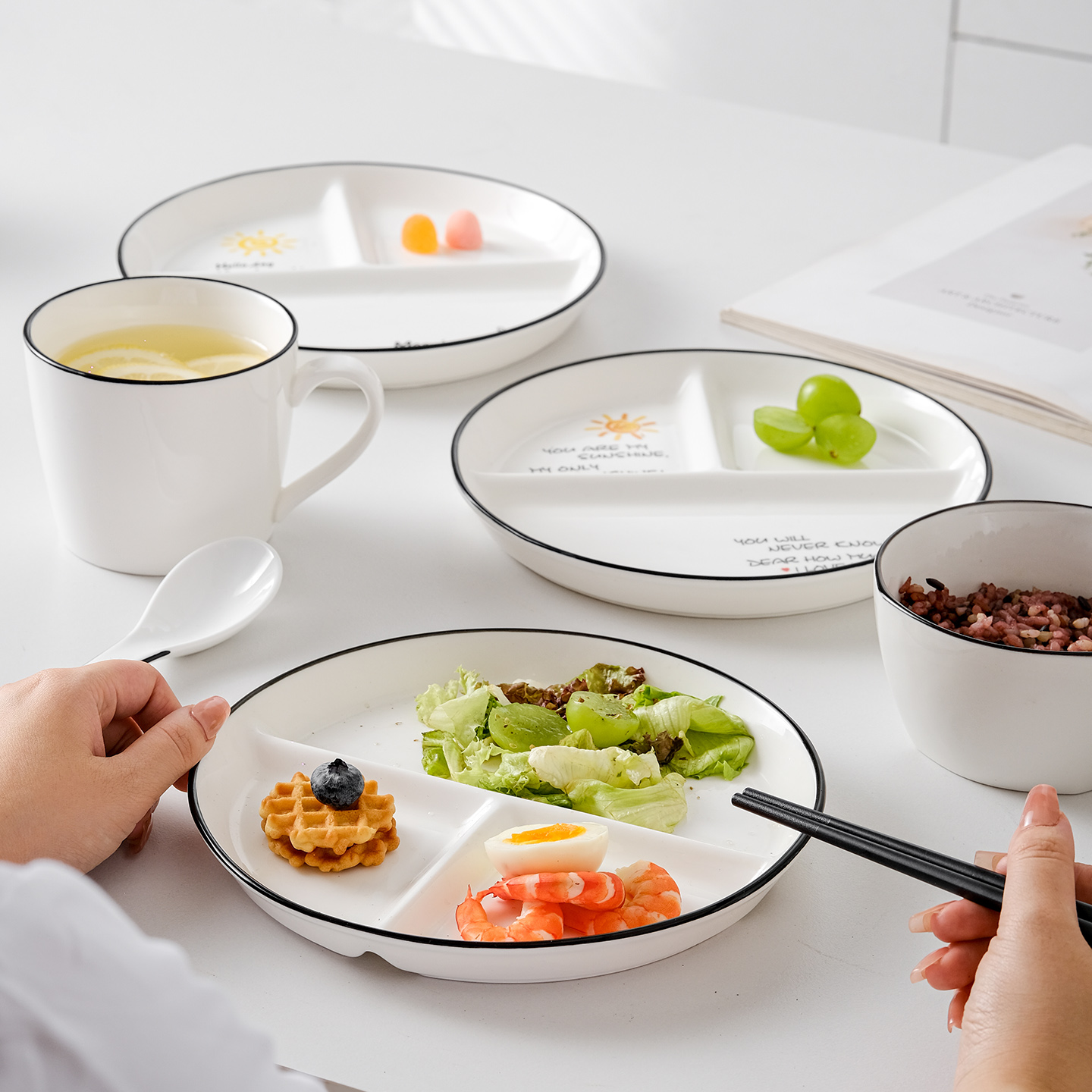 分格减脂餐盘陶瓷家用早餐儿童一人食211减肥定量盘子三格分餐盘