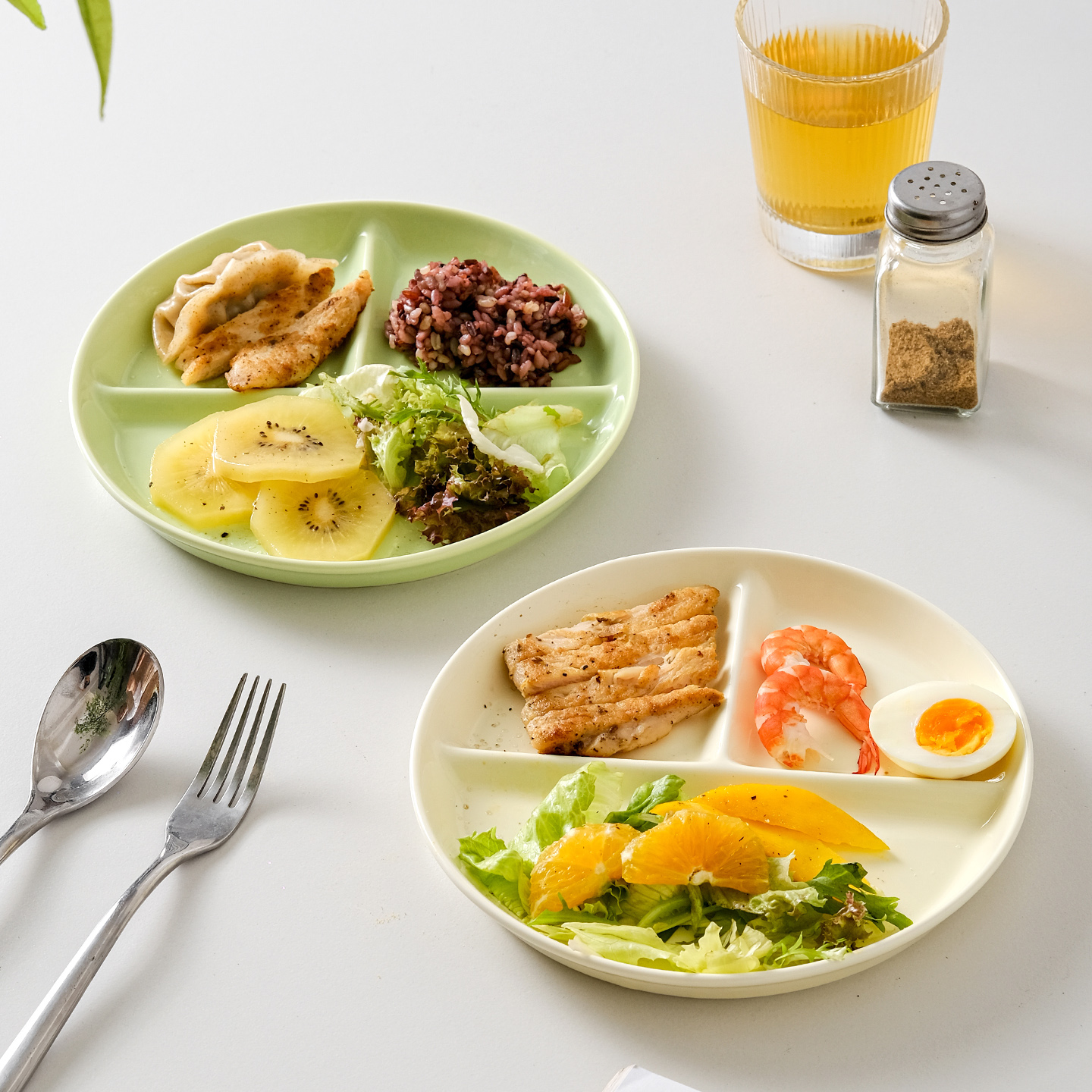 奶油风加深陶瓷分格盘碗大人减脂定量个人专用三格盘分隔餐盘带盖