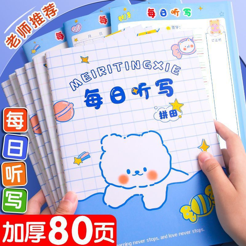 每日听写本小学生英语单词语文生词听写纸拼音本一年级练习本默写