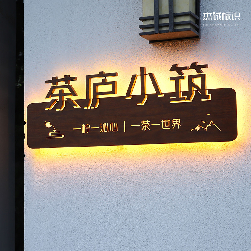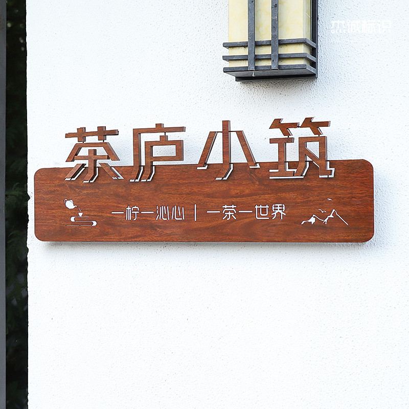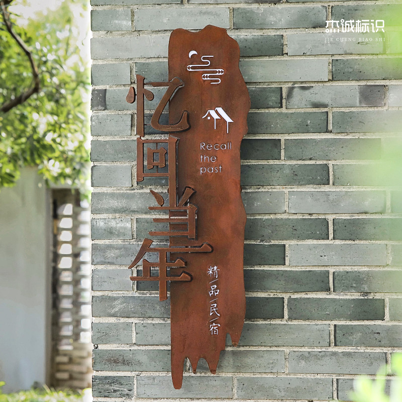 热销灯箱广告牌定制复古铁锈木纹门牌酒店民宿招牌个性门头发光字
