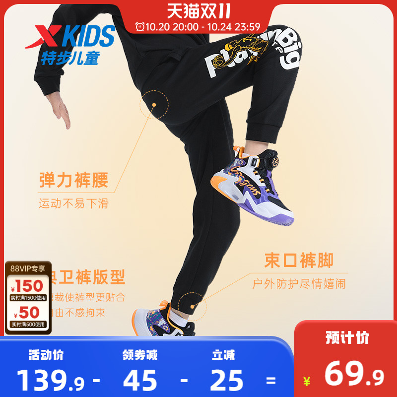 特步童装男童印花裤子儿童长裤2025秋冬款大童加绒运动裤冬装卫裤