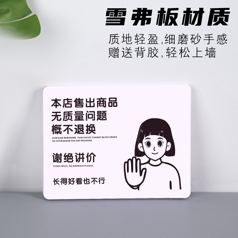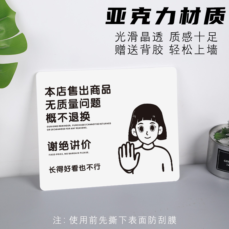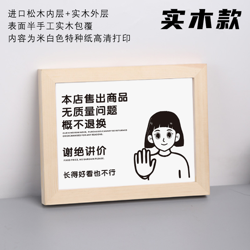 本店售出商品概不换一经指提示牌标识请勿禁止谢绝议价讲赊账亚克力雪弗板相框可挂墙创意禁止吸烟小清新