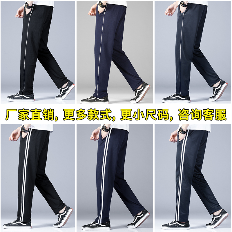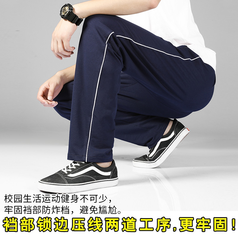 纯棉校服裤子男女高中学生两条杠藏蓝色春秋夏季运动双杠初中校裤