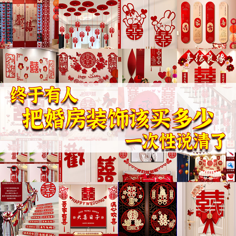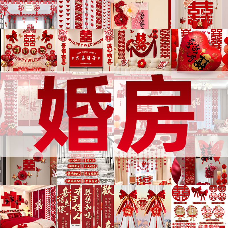 婚房布置套装男女方结婚装饰新房卧室全屋装扮用品大全套窗帘挂布