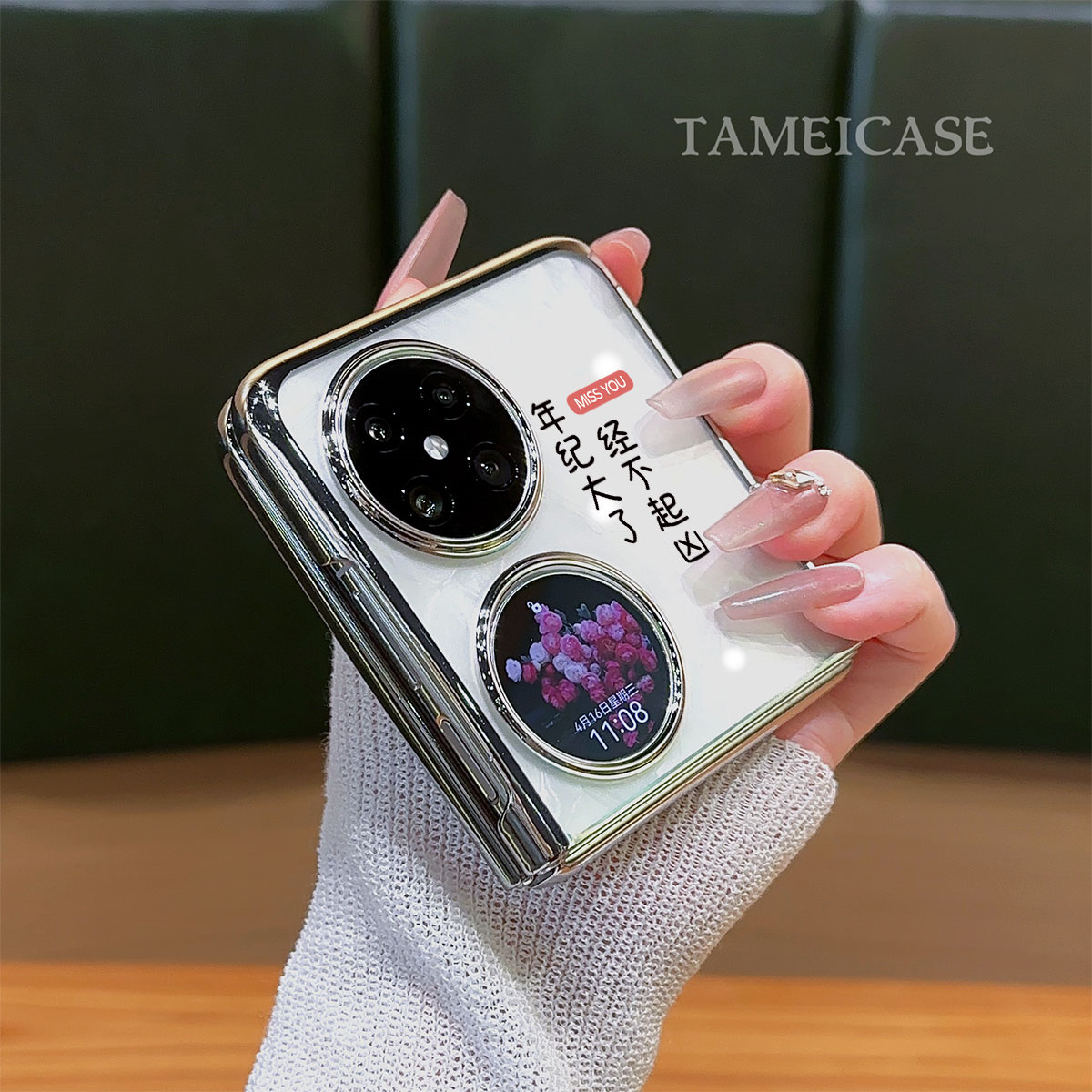 适用于【华为POCKET2】经不起凶捧花女孩电镀银透明折叠高颜值小清新支架防摔个性励志文案手机壳女款