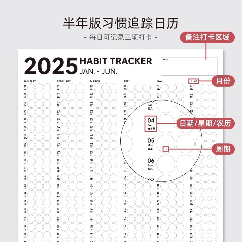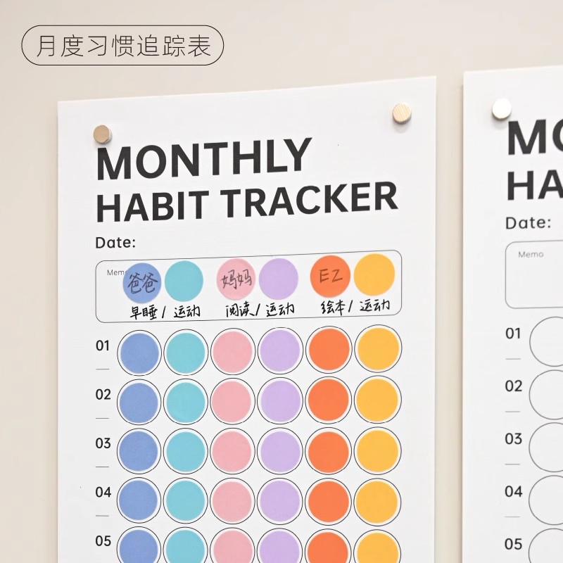 习惯追踪日历2025-2026新款挂墙家用新款挂历小大学生儿童亲子自律打卡养成工具简约高档记事全年一张倒计时