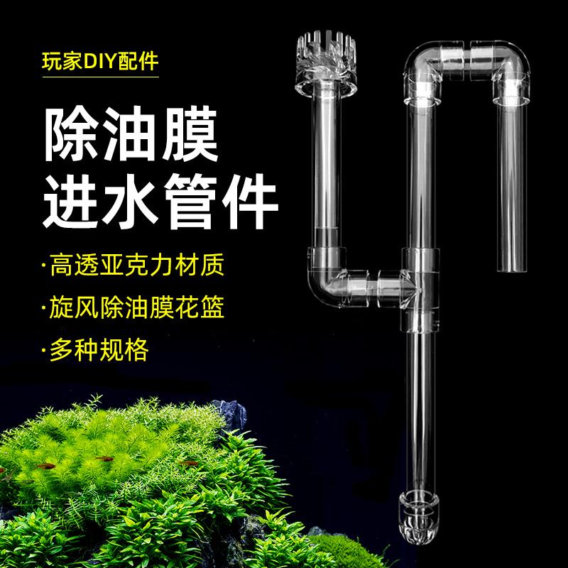 鱼缸亚克力透明管件进水口滤桶改装除油膜器旋转浮头花篮三通配件