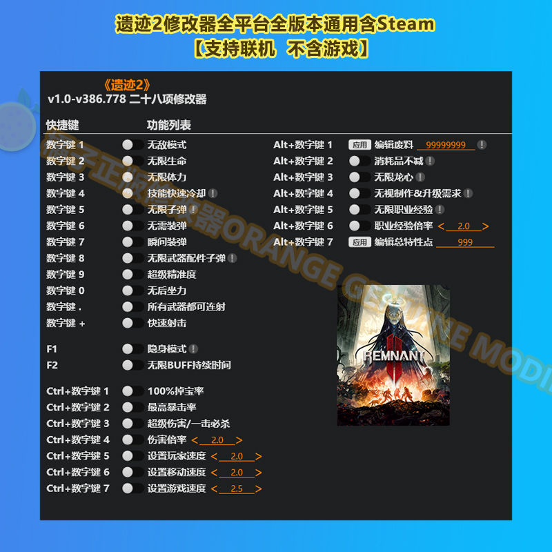 遗迹2修改器联机可用 正版Steam/Epic单机辅助/存档 不含游戏