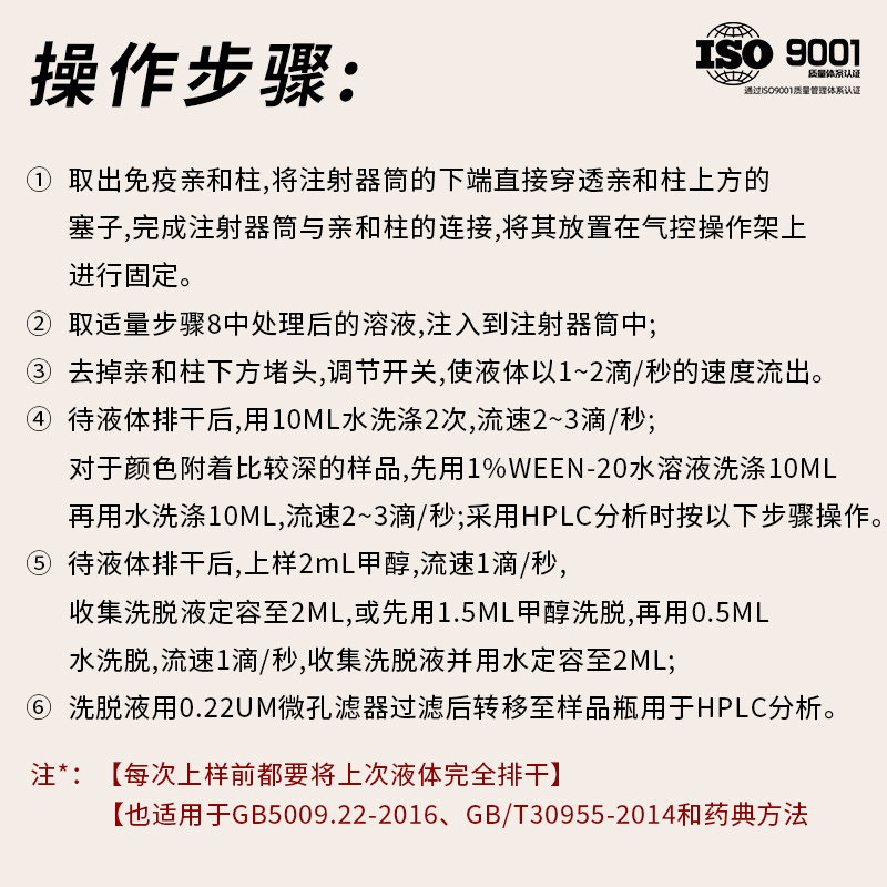 免疫亲和柱真菌毒素B1玉米赤霉烯酮呕吐毒素真菌毒素AF黄曲霉毒素
