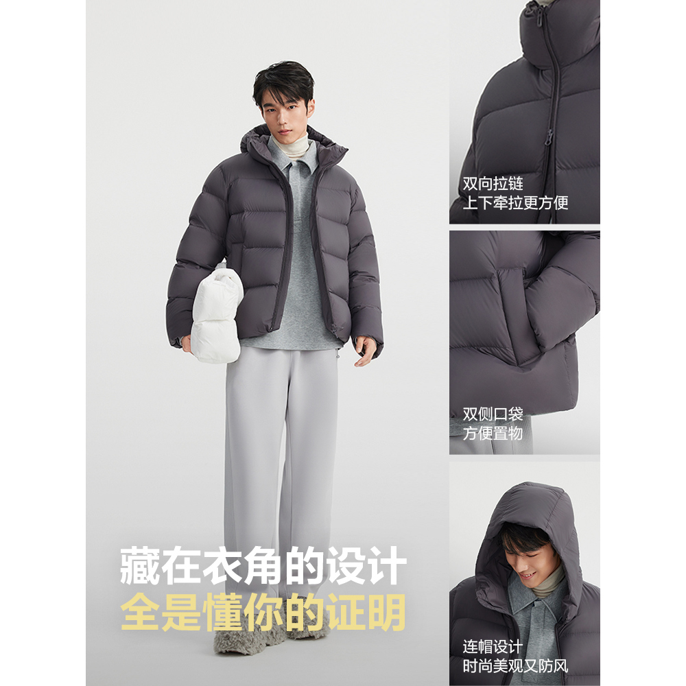 鸭鸭轻薄羽绒服男士2025年秋冬反季短款保暖休闲时尚连帽鸭绒外套