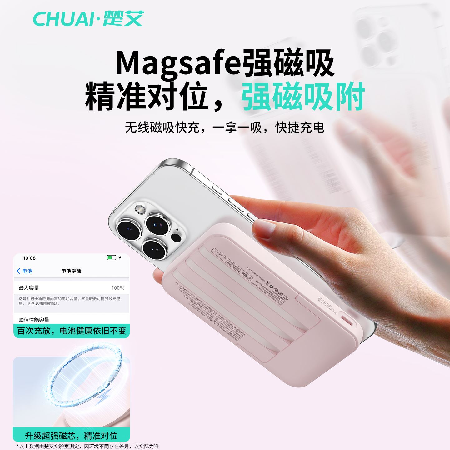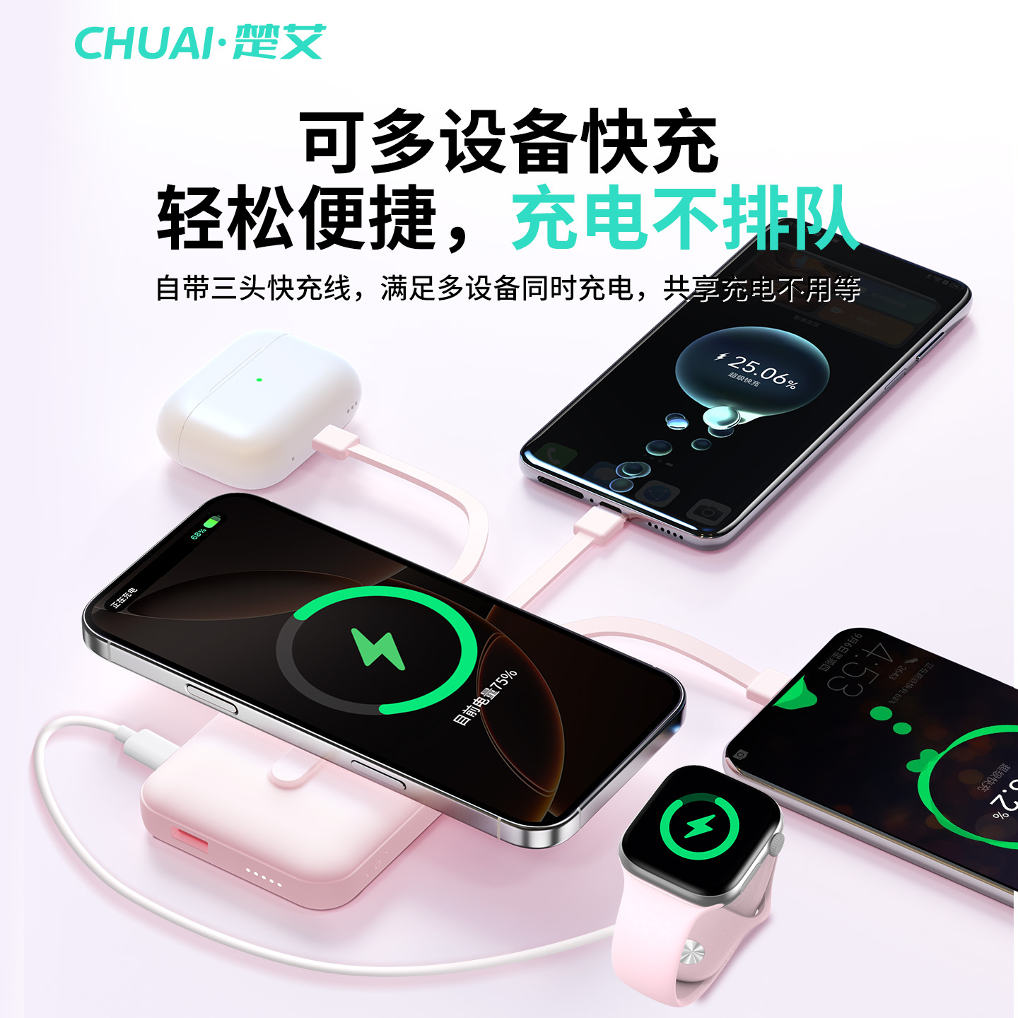 【3C认证可上飞机楚艾磁吸充电宝新款大容量三合一支架充电器20000毫安自带线手表移动电源便捷适用苹果华为