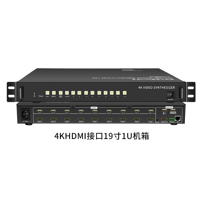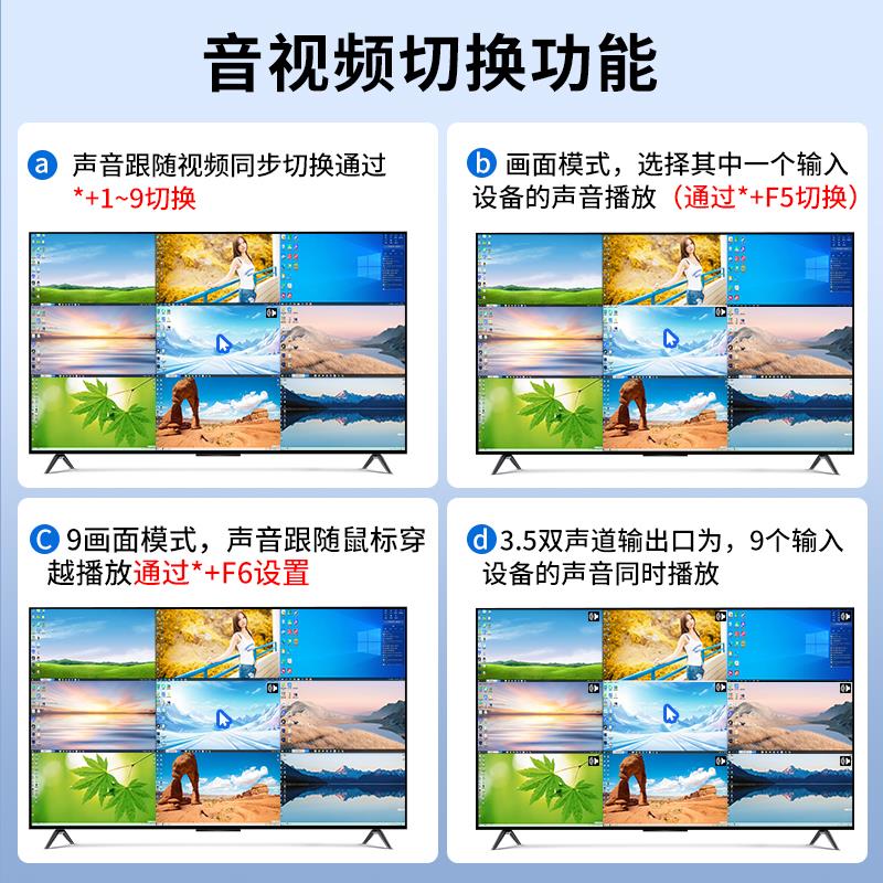 4k60hz九画面分割器9进1出kvm无缝同步切换多屏显示9口电脑分屏器