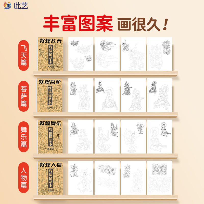 敦煌壁画线稿描摹本飞天舞乐菩萨人物中国画白描入门线描临摹描绘描红初学画画毛笔工笔静心解压教程画本书