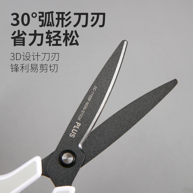 家用剪刀日本PLUS普乐士涂氟镀钛剪刀拆快递办公学生手工安全防粘