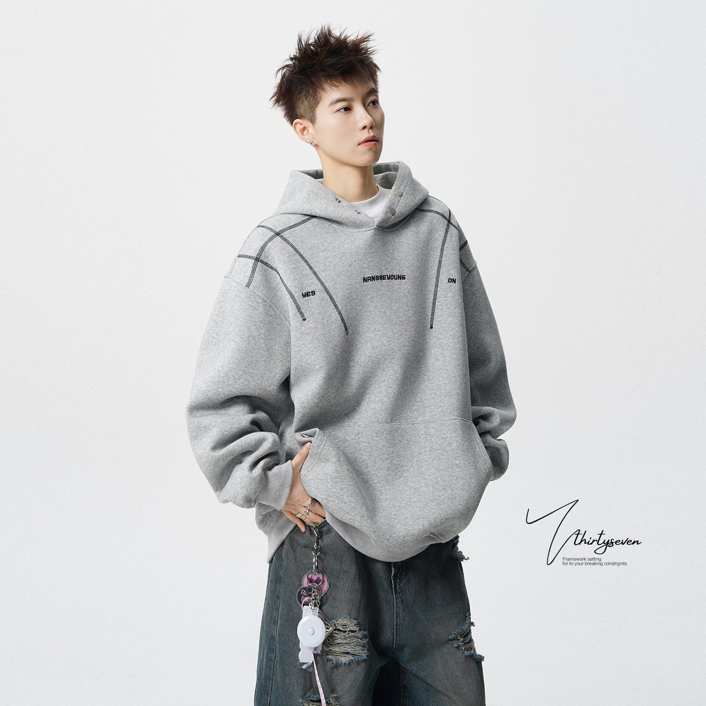 V37明显撞色设计明线连帽卫衣男款秋季潮牌刺绣字母休闲宽松外套