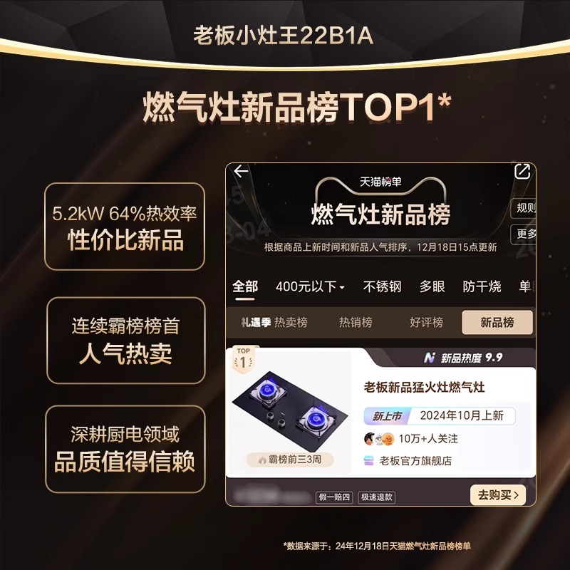 老板22B1A燃气灶5.2KW猛火免改孔天然液化气灶具以旧换新官方旗舰