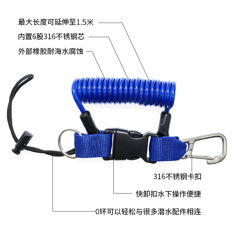 NiteScuba 潜水相机防丢绳不锈钢失手绳gopro挂绳action 5 pro/4