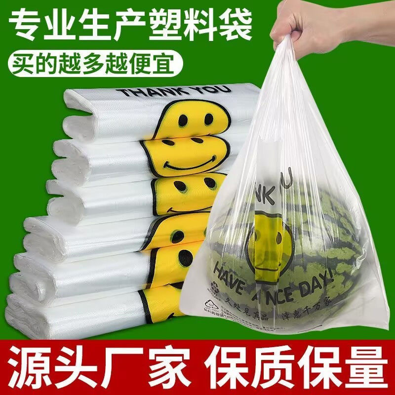 笑脸加厚透明塑料袋外卖垃圾袋商用打包袋购物袋方便手提袋子食品