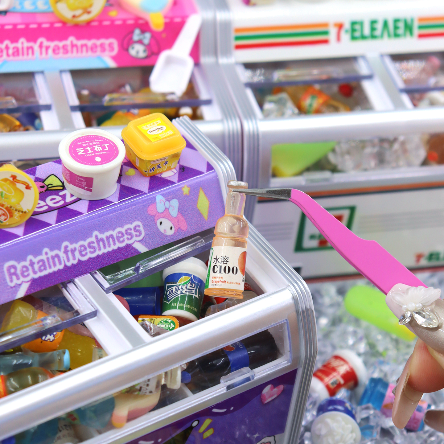 仿真迷你超市雪糕小冰柜小冰箱模型微缩冰块冰淇淋食玩过家家玩具