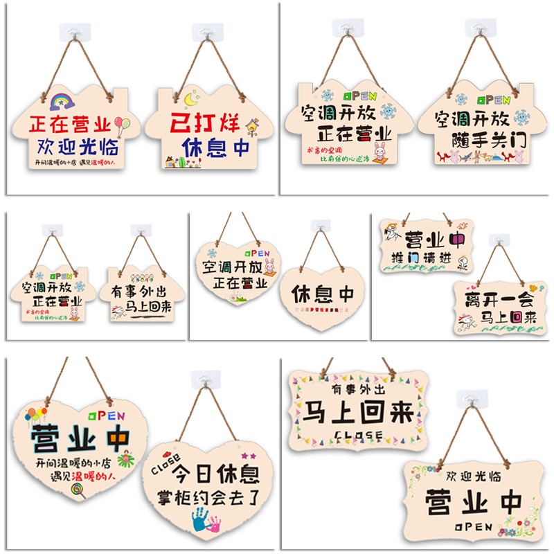 正在营业空调开放双面定制木质挂牌店铺冷气开放请勿吸烟提示牌有