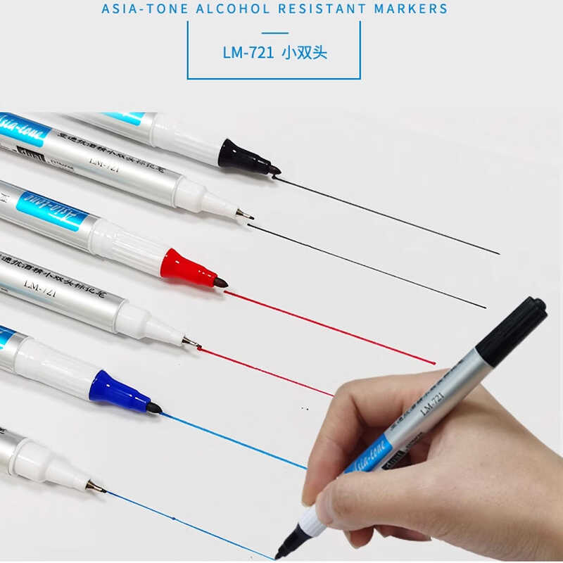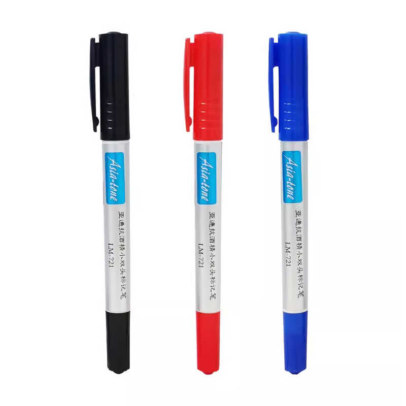 亚通LM-721防酒精记号笔耐高温油性笔小双头抗实验室酒精笔马克笔