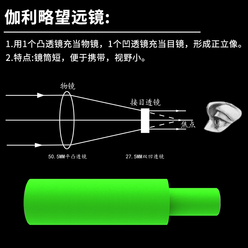 八年级自制望远镜材料包光学玻璃镜片双凸透镜应用照相机原理凹透镜初中物理伽利略开普勒天文望远镜材料包