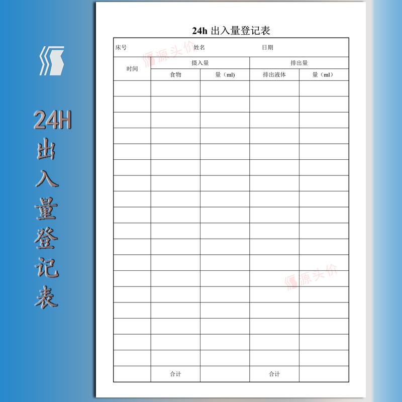 24h出入量登记表出入量记录表24小时出入液量摄入食物排除液体量
