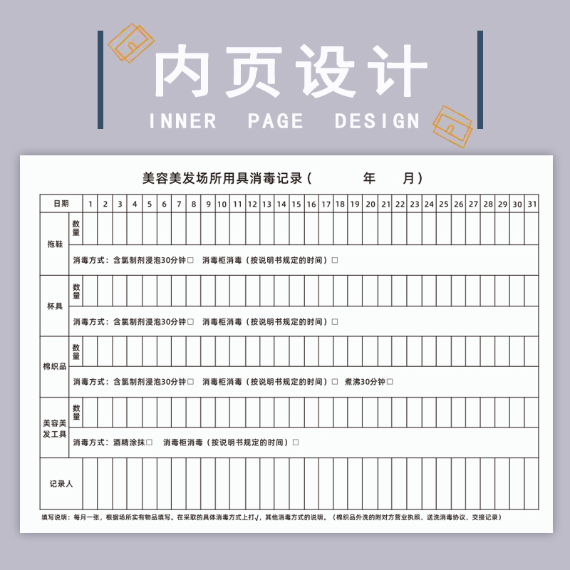 美容美发场所用具消毒记录本公共用品物品检查卫生理发店场所清洁本杯具使用毛巾物品杀毒灭菌时间登记本定制