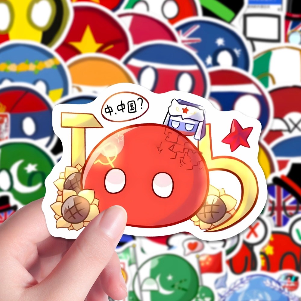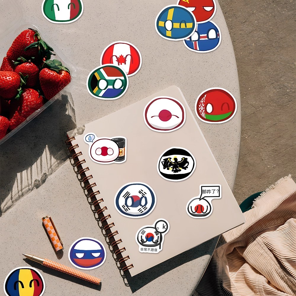160张波兰球贴纸ch国家拟人手绘卡通可爱个性自粘手账笔记本防水