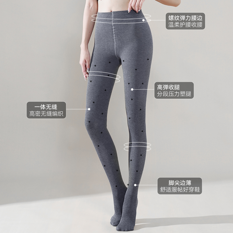 灰色波点连裤袜女秋冬季加绒加厚压力显瘦打底袜春秋款外穿打底裤