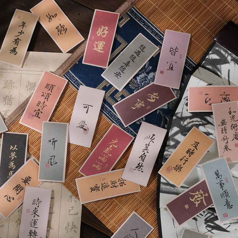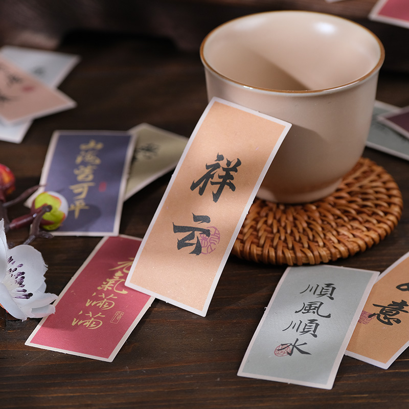 语闲复古国风云合雾集系列贴纸包30张入高颜值国潮风书法祝福语文字素材手帐DIY装饰手机壳背景拼贴画共4款入