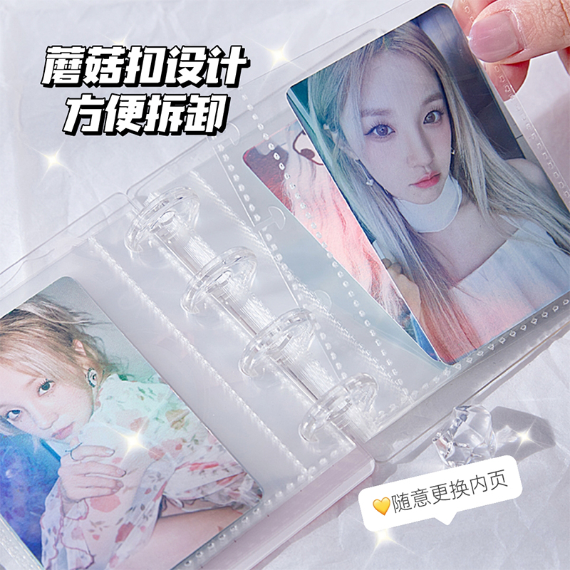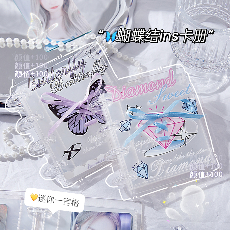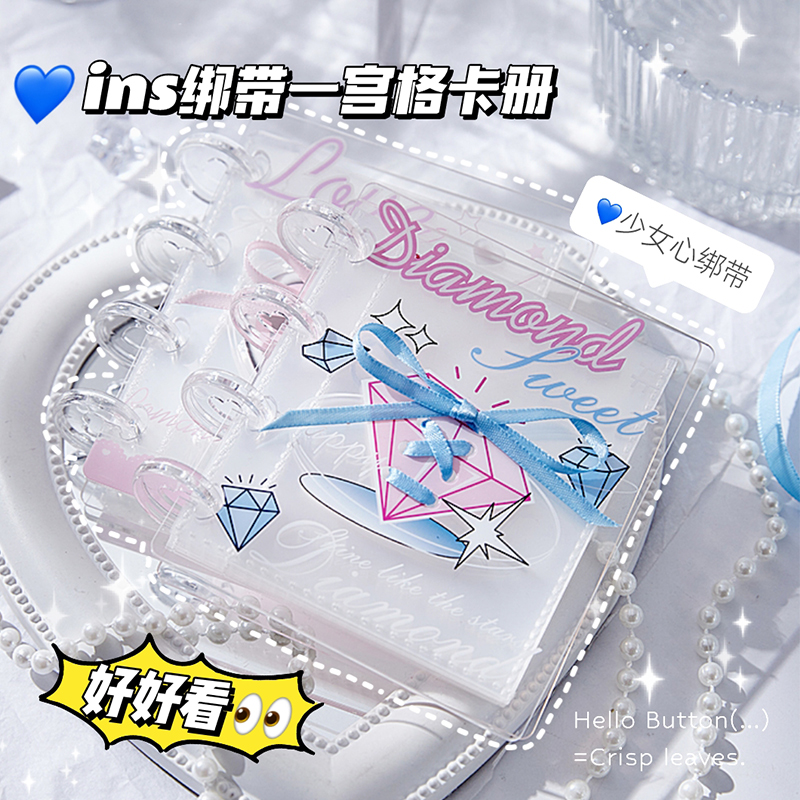 芭蕾风丝带蝴蝶结亚克力一宫格卡册活页相册温柔少女高颜值3寸拍立得爱豆专辑集卡片收藏册小卡收纳册蘑菇扣