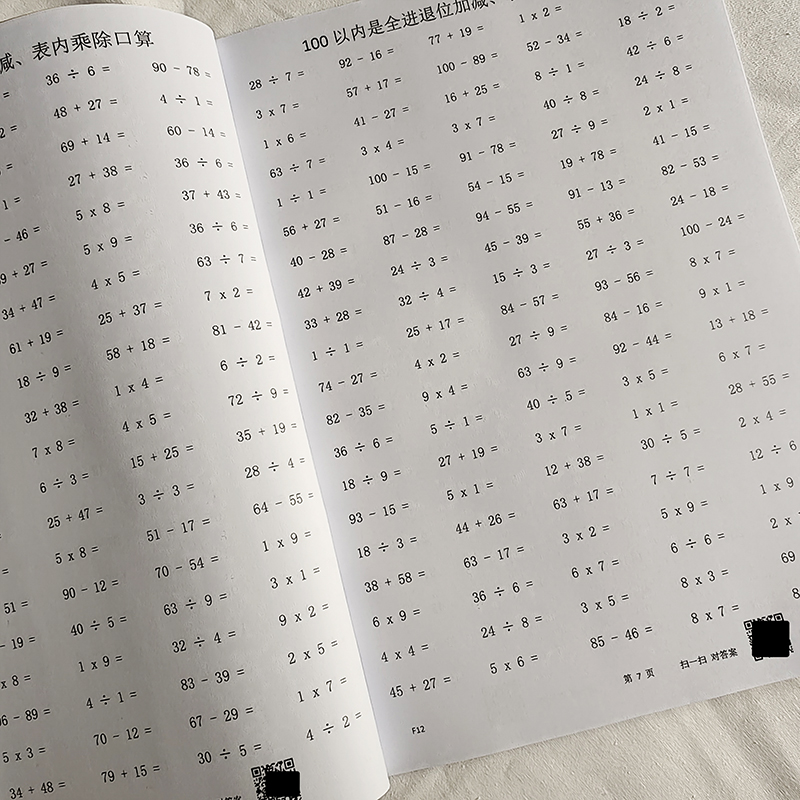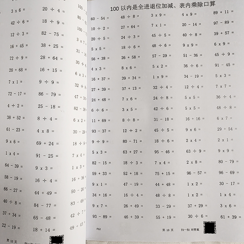 小学二年级数学口算练习本100以内进位退位加减乘除算术薄