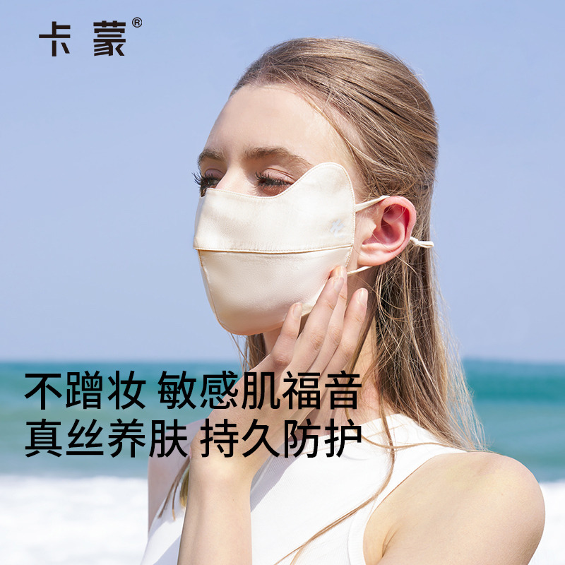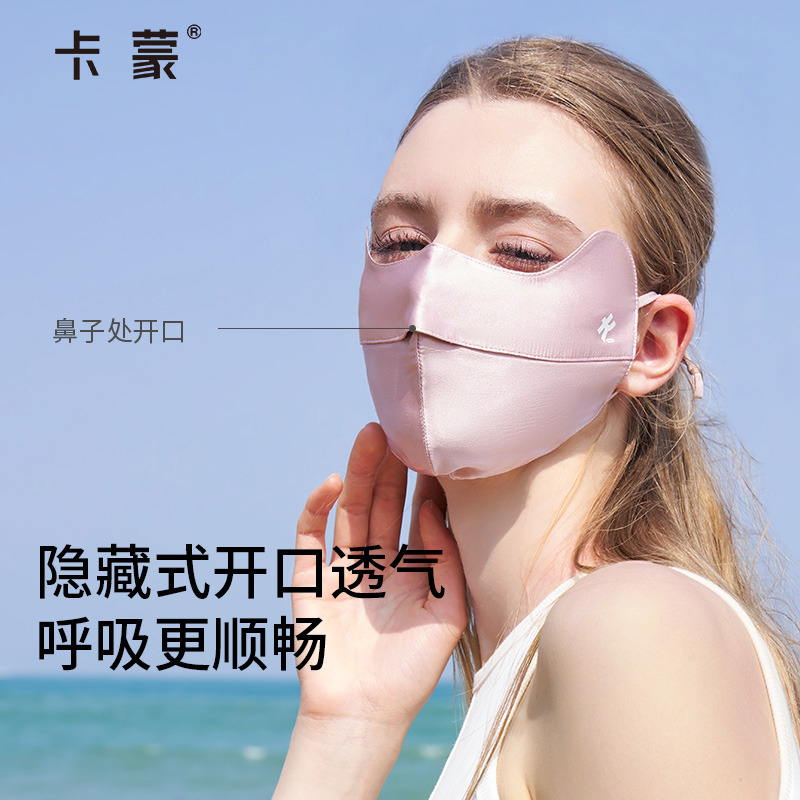 卡蒙100%桑蚕丝真丝护眼角防晒口罩女防过敏吸湿亲肤凉感面罩