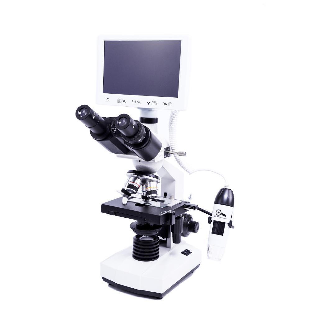 三目TV生物显微镜超清7寸显示屏1600X 数码显微带手持镜细菌细胞