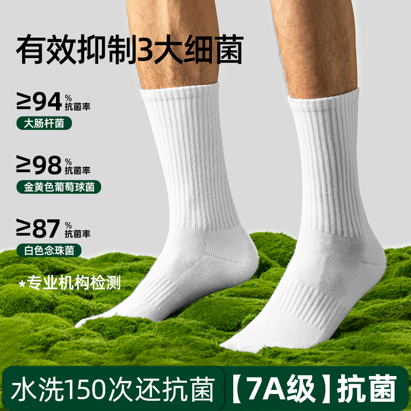 子墨棉品袜子男士中筒白黑色长筒运动男生短袜纯新疆棉防臭7A抗菌