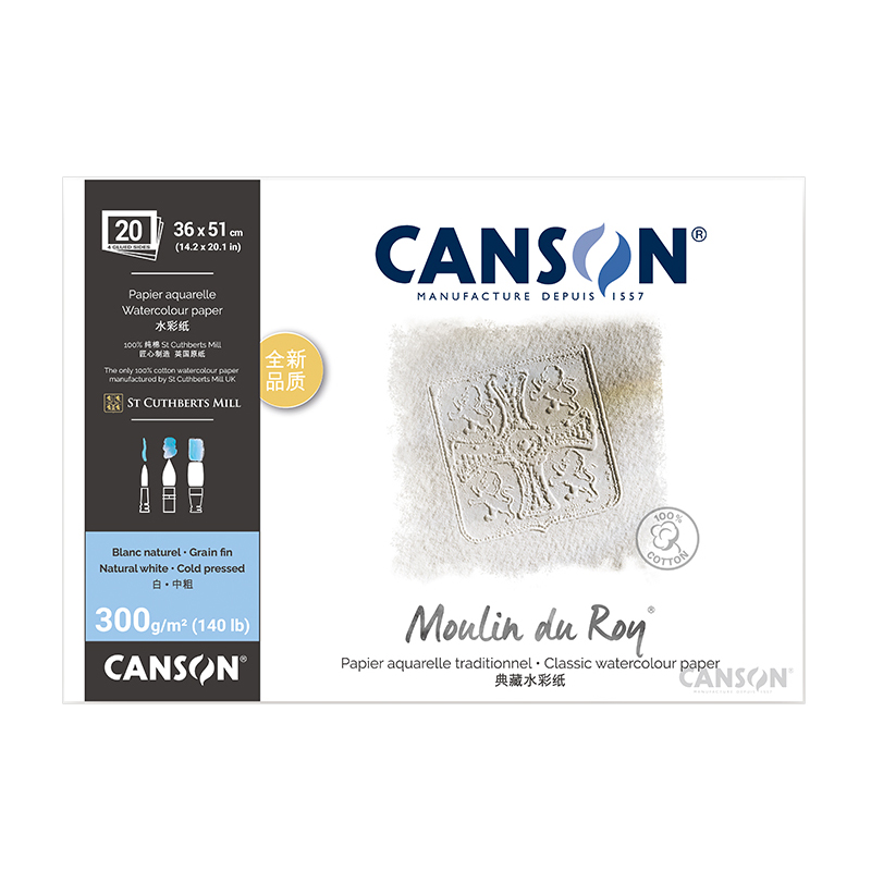 获多福原纸 康颂新莫朗300g全棉190g纯棉浆水彩纸水彩本普白本白高白 英国获多福水彩纸散纸更名为康颂新莫朗
