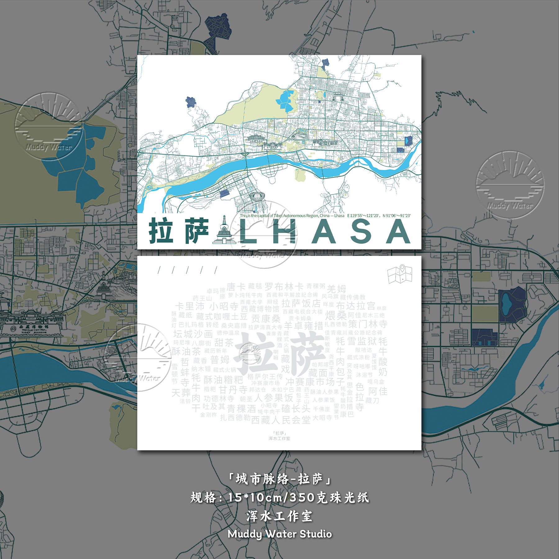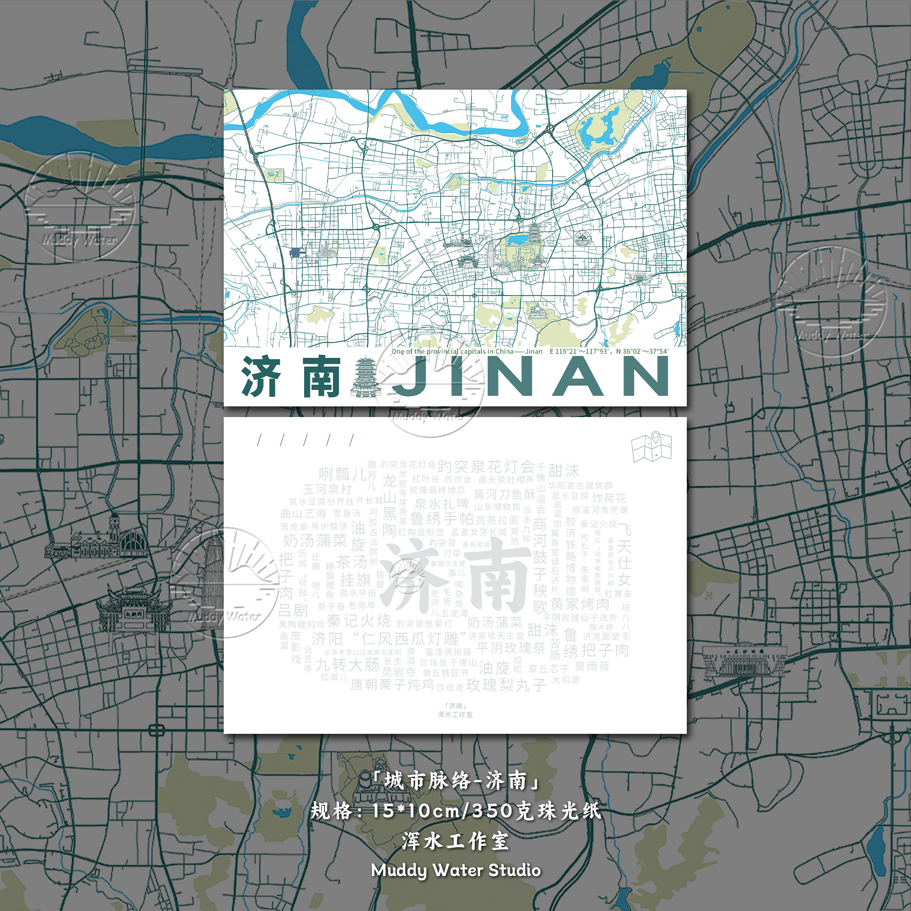 「城市脉络-乌鲁木齐」原创地图创意明信片插画文艺旅游贺卡礼物