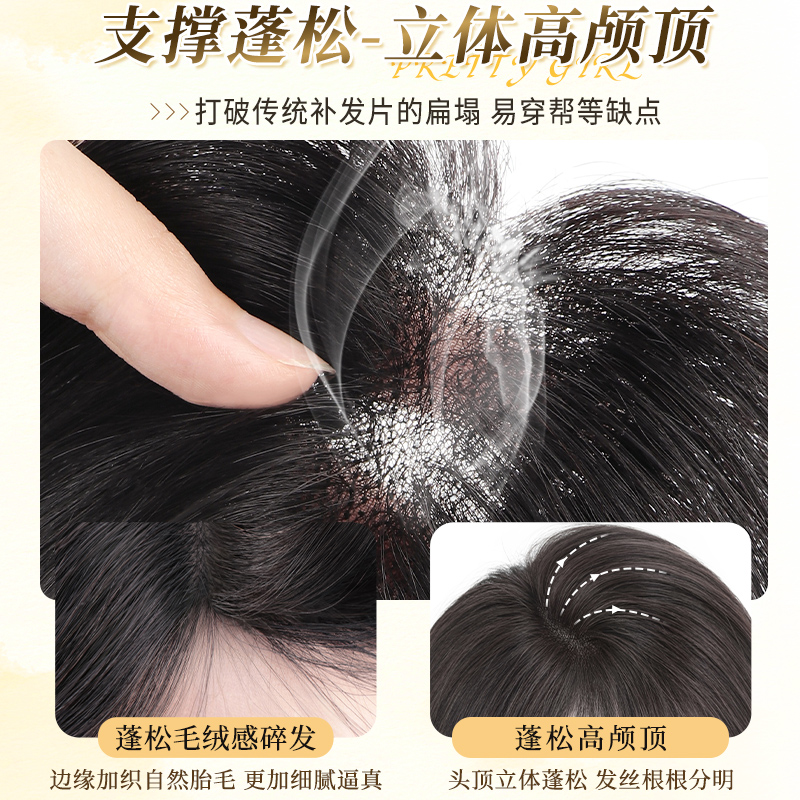 刘海假发女片头顶补发增发量真发遮白发蓬松高颅顶无痕轻薄假刘海