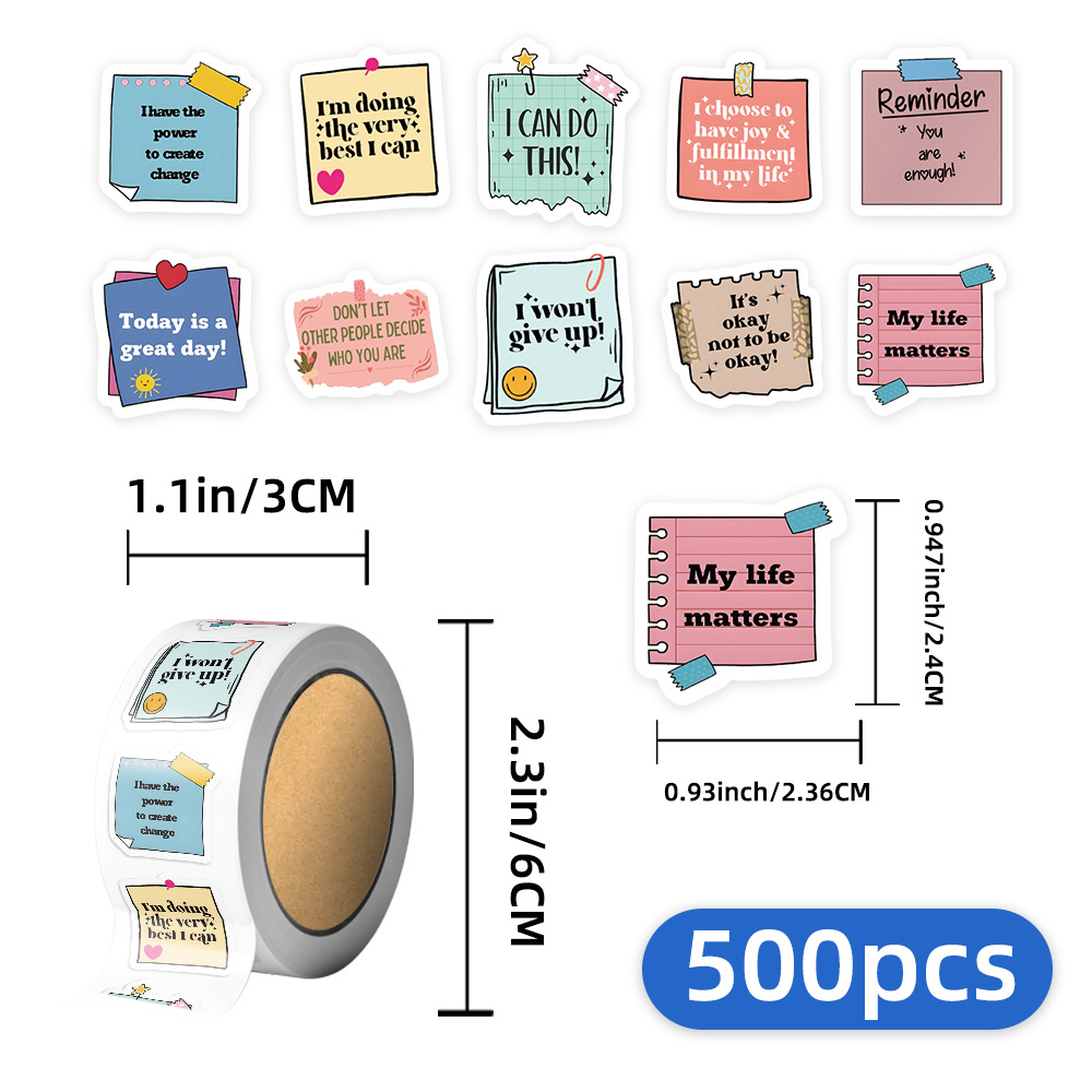 1卷/500张自我肯定励志标签卷卷贴手账本信封水杯封口贴装饰贴画